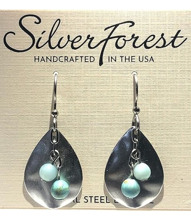 SILVER FOREST Hammered Tear & Turquoise Beads Earrings