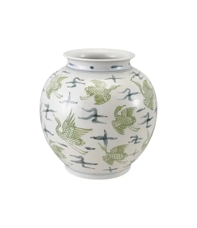 Hand-Painted Ceramic Vase With Crane Pattern