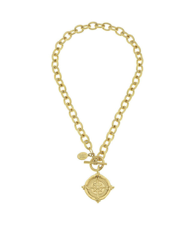 SUSAN SHAW Handcast Gold Compass Front Toggle Necklace
