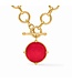 Lustrous, lightly hammered links lead to a round precision-cut statement gemstone embellished with a cameo bee on the reverse side.