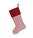Featuring bold red and cream stripes with a solid red cuff, it blends classic holiday color with rustic texture. Perfect for stuffing with seasonal treats and décor cheer.