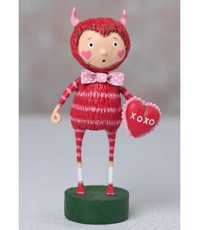 This adorable Love Monster has pink heart cheeks and is sporting a festive bow tie. He is holding a red, heart-shaped "XOXO" sign. But watch out! Because he may attack you with hugs and kisses this Valentine's Day!