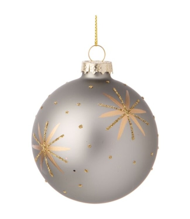 Matte Silver Glass Ball, Gold & Glitter Star Ornament