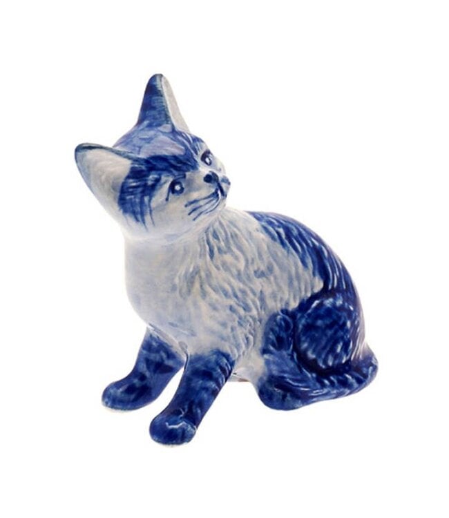 This Delft blue miniature cat is made of ceramic. This cat with stripes is a nice decoration for in the cupboard, on the table with other Delft blue miniatures or to give away to a real cat lover!