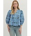 Mirra Floral Print 3/4 Puff Sleeve Top