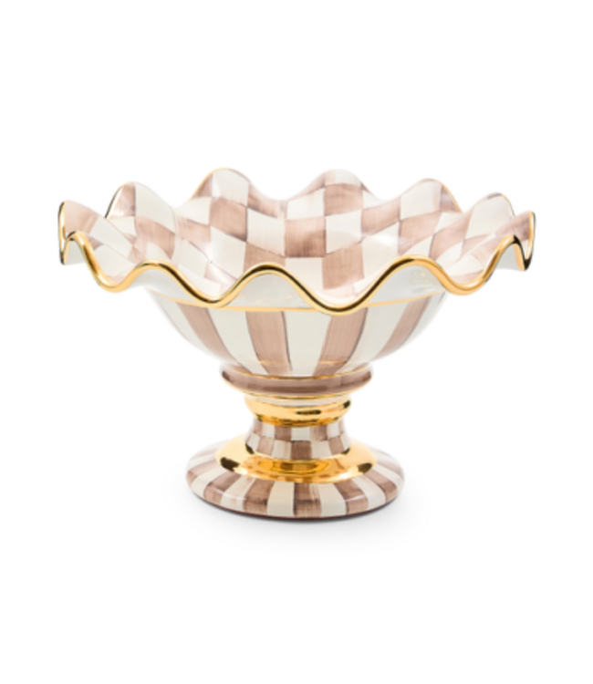 MACKENZIE CHILDS Mocha Check Ceramic Compote