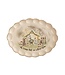 Hand-painted speckle stoneware platter with scallop edge.