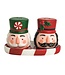 Hand-painted ceramic Nutcracker salt and pepper shakers come with coordinating peppermint tray.