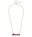 Show your team pride in style with the Oklahoma Sooners Pave Autograph Enamel Necklace in Crimson. This necklace is the perfect way to wear your loyalty with a dash of glamour.