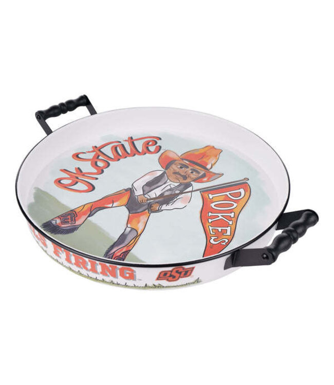 Bring maroon and white spirit to the table with the Mississippi State Mascot Enamel Tray. Featuring Bully and “Hail State!” on the rim, this enamel tray is great for serving snacks, showing off tailgate treats, or gifting to devoted Bulldogs fans.
