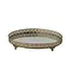 Oval Metal Filigree Footed Tray with Mirror - Gold Finish