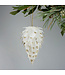 This Feather Ornament is designed to imitate a pine cone with a modern look made with trimmed Goose Coquille feathers tipped with shimmering glitter.