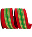 Regal Stripe Green Trimming Dupioni Deluxe Wired Edge Ribbon in red and green offers an ornate holiday look with shimmering accents and rich texture.
