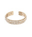 The Rhinestone 4 Line Open Cuff Bracelet features four shimmering lines of rhinestones in a sleek open design. This bold, elegant cuff adds a touch of sparkle and sophistication to any ensemble.