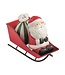 Hand-painted stoneware Santa and toy sack salt and pepper shakers rest in tin sleigh.