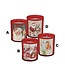 Displaying individual double-sided designs on a matte red jar. Features vintage holiday scenes of Santa and reindeer. Candles feature soy-based wax and a cotton wick with 35 hours of burn time activating a refreshing Evergreen scent. Santa's Reindeer jar
