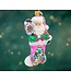 This Santa's stocking is bursting with sparkly surprises! With a shimmering suit, a glittery hat, and a colorful assortment of shiny brite ornaments, this Santa is sure to bring a burst of cheer to your holiday decor.