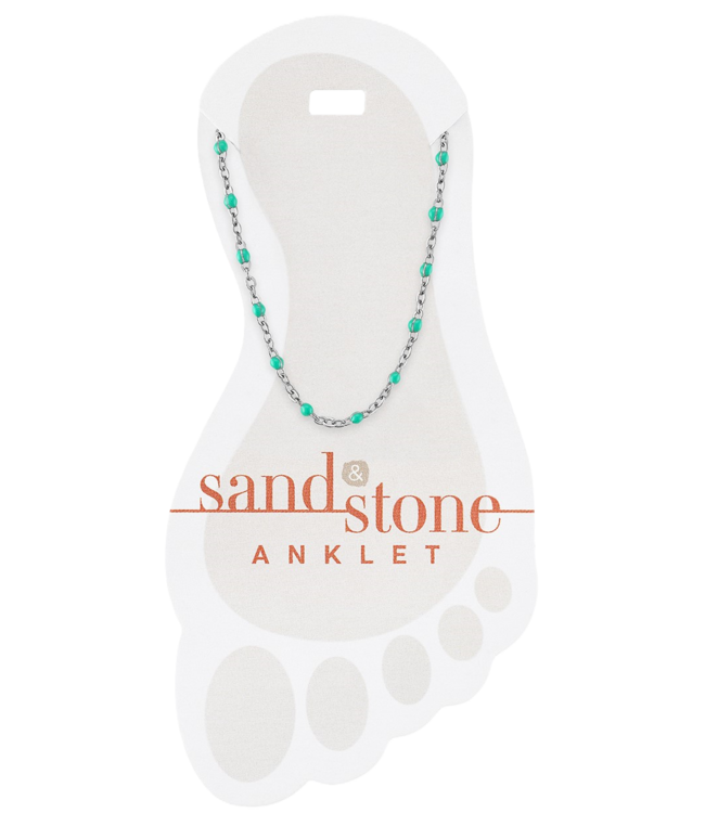 Silver Petite Blue Beaded Chain Sand & Stone Anklet