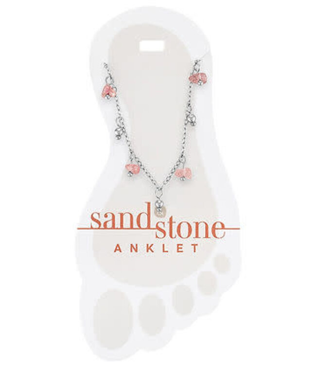 Silver Pink Natural Stone Dangle Sand & Stone Anklet