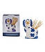 A perfect addition to your dinner table, this pick holder features a blue and white hand painted Staffordshire dog. The bamboo picks are perfect for serving appetizers or cocktail garnishes.Â