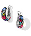 A variety of colorful fine quality crystals in myriad shapes plays across these small hoop earrings.