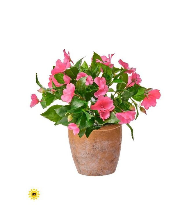 Uv Impatiens in Clay Pot 12”