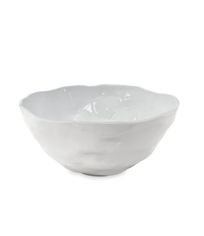 The VIDA Nube Large Deep Round Bowl in white is crafted in durable melamine with fluid curves and a luminous finish. Its ample size makes it perfect for serving leafy salads, pasta, or fresh fruit at gatherings indoors or outdoors.
