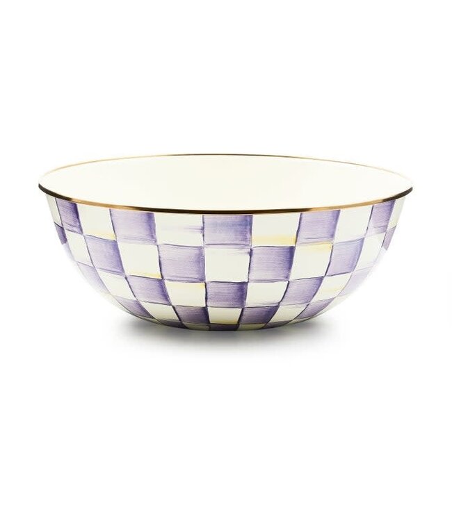 When it comes to the Violet Check Extra Large Everyday Bowl, the name says it all. The perfect size for year-round use, it’s decorated with hand-painted purple checks on a heavy-gauge, hand-glazed steel underbody, rimmed with bronzed steel.