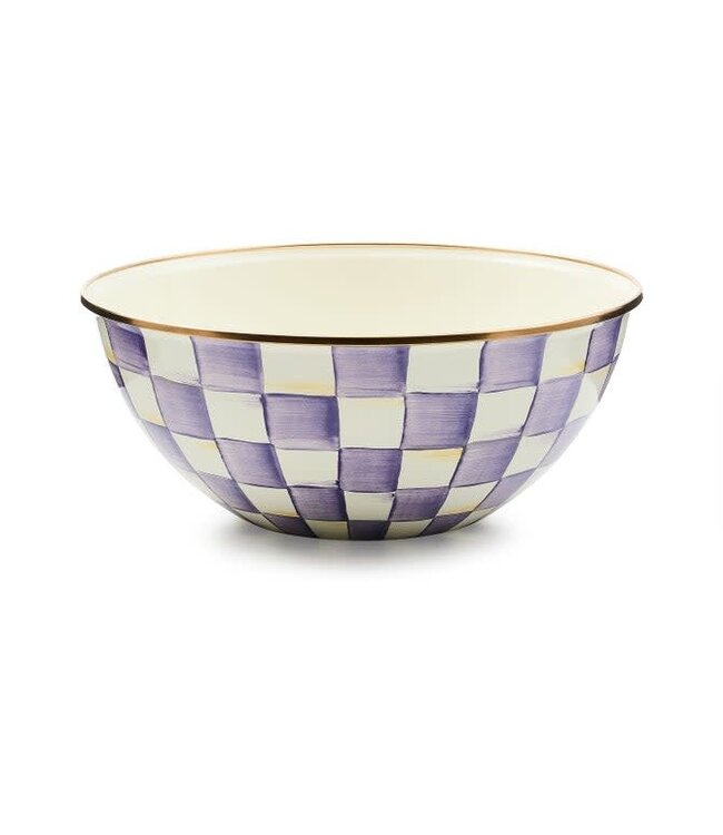When it comes to the Violet Check Everyday Bowl, the name says it all. The perfect size for year-round use, it’s decorated with hand-painted purple checks on a heavy-gauge, hand-glazed steel underbody, rimmed with bronzed steel.