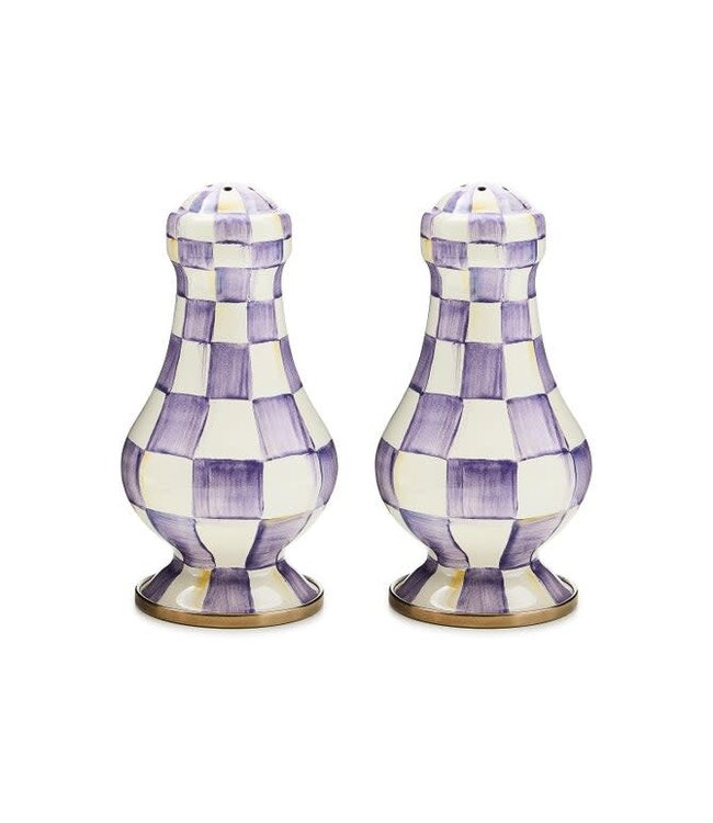 MACKENZIE CHILDS Violet Check Large Salt & Pepper Shakers - Sold as Set