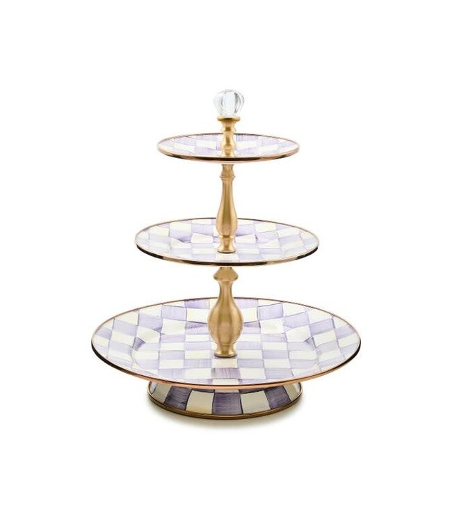 MACKENZIE CHILDS Violet Check Three Tier Sweet Stand