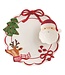 Hand-painted stoneware chip platter features in-mold icons and attached Santa tidbit bowl.