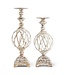 Enhance your décor with this White & Gold Washed Woven Metal Candleholder. Its intricate lattice design and distressed finish add vintage charm to any space.