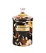 Heavy-gauge, hand-glazed steel underbody embellished with hand-applied transfers, rimmed in bronzed stainless steel. Lid is topped with a glass finial. Silicone seal inside lid. Pieces may vary due to the handmade nature of each product.Â