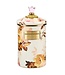Heavy-gauge, hand-glazed steel underbody embellished with hand-applied transfers, rimmed in bronzed stainless steel. Lid is topped with a glass finial. Silicone seal inside lid. Pieces may vary due to the handmade nature of each product.