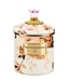 Heavy-gauge, hand-glazed steel underbody embellished with hand-applied transfers, rimmed in bronzed stainless steel. Lid is topped with a glass finial. Silicone seal inside lid. Pieces may vary due to the handmade nature of each product.