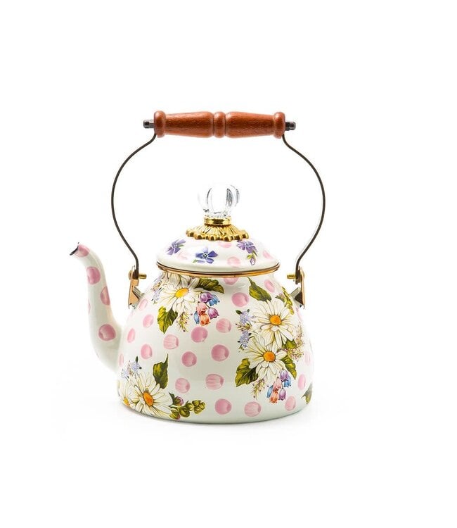MACKENZIE CHILDS Wildflowers Pink 2 Quart Tea Kettle